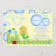 Esta festa de aniversário 5x7 convida tem uma sereia loura, um caranguejo vermelho, e três pescam a natação sob o mar. Há uma estrela do mar azul igualmente que esconde na alga. Muitas bolhas estão flutuando ao redor também. Há três grandes bolhas que você pode personalizar com nome e idade da sua criança. A informação do partido, que é personalizada facilmente, está abaixo das grandes bolhas.