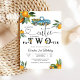 Celebre o dia especial do seu pequeno com este encantador convite de aniversário de caminhão vintage azul, apresentando laranjas divertidas e galhos de citrinos caprichosos. Perfeito para uma festa temática de "pequeno querido", este design combina charme rústico com detalhes brilhantes e alegres para deliciar os convidados. Personalize com o nome da criança, detalhes da festa e informações de RSVP para criar um souvenir personalizado. Ideal para aniversários de crianças pequenas, celebrações de verão e eventos inspirados em citrinos, este convite define o tom para uma reunião divertida e festiva.