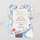 Entre em um mundo de fantasia com este encantador convite de aniversário temático da Alice no País das Maravilhas! Projetado em um estilo suave e feminino, este convite apresenta ilustrações desenhadas à mão em aquarela inspiradas no clássico conto - pense em xícaras, relógios de bolso, chaves e personagens encantadores. Listras delicadas e laços doces adicionam um toque lúdico e feminino, tornando-o a escolha perfeita para uma celebração de chá ou reunião mágica no jardim.