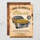 Convide seus convidados com esta festa de aniversário antiga, convidando com um belo carro vintage e a tipografia retrorreflectora contra um fundo de pergaminho. Basta adicionar os detalhes do seu evento neste modelo fácil de usar para torná-lo um convite de tipo único. Sacudir a placa para revelar uma textura rústica de madeira de celeiro na parte traseira da placa.