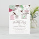 Convide os convidados para o seu evento com este convite de aniversário personalizável. Ele apresenta casas de pássaros, papagaios e flores. É perfeito para aniversários de primavera e ao ar livre. Personalize adicionando seus detalhes. Outras cores estão disponíveis.
