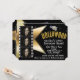 Convite de Aniversário com 3 Fotos Preto e Dourado de Hollywood. Personalize para qualquer evento.
