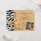 Fita dourada e pérolas prateadas com listras pretas e brancas de zebra decoram este convite contemporâneo de festa de aniversário. Envie sua própria foto para a moldura funky de zebra para personalizar ainda mais a aparência. Há muito texto personalizável neste convite moderno para adicionar as informações da sua festa. Há uma moldura adicional de zebra disponível para texto personalizável ou você pode excluir este elemento se preferir não usá-lo. Nós também temos este design em várias cores. Cores coordenadas no verso deste convite luxuoso completam a aparência e tornam este design premium perfeito para quase qualquer ocasião. Se em algum momento você precisar de ajuda para personalizar este produto, por favor, sinta-se à vontade para entrar em contato conosco e ficaremos felizes em ajudar! Por favor, note que não há cobrança adicional por este serviço personalizado.