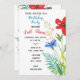 Este convite bonito apresenta uma pintura aquosa de flores vermelhas e amarelas. Personalize esta modelo com suas informações de aniversário ou outras ocasiões.