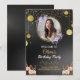 Convite de Aniversário com Flores Preto e Dourado