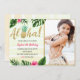 Cartão de Convite de Aniversário Tropical com Foto Personalizada, Moldura com Brilho Dourado, Luzes de Corda e Abacaxi Tropical Dourado