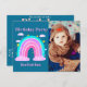Convite de Aniversário de 1 Ano com Foto Infantil Arco-íris Rosa Azul . Celebre o primeiro aniversário do seu pequeno com estilo com este Convite de Aniversário de 1 Ano com Foto Infantil Arco-íris Rosa Azul. Com um design caprichoso de arco-íris em tons pastel suaves de rosa e azul, este cartão-postal encantador é perfeito para definir o tom de uma celebração mágica e memorável.