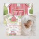 Adicione um toque pessoal à sua festa temática de fazenda com este convite de foto em aquarela. A foto do seu filho é combinada com uma cena encantadora de um celeiro vermelho, moinho de vento e animais fofos da fazenda. Este design personalizado captura o espírito caprichoso da fazenda, tornando-se um lindo souvenir para amigos e familiares enquanto você celebra o marco do seu pequeno agricultor.