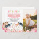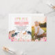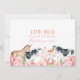 Convite de aniversário temático de animais da fazenda floral rosa fofo apresentando vários animais da fazenda e faixa rosa.