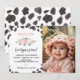 Nossos Cartões de Convite de Aniversário com Impressão de Vaca são a maneira perfeita de convidar amigos e familiares para a sua festa. O design apresenta um tema de fazenda de vacas, com muito espaço para todos os detalhes importantes, como data, hora e local da festa. Perfeito para qualquer idade, gênero e tema da festa, certamente irá impressionar seus convidados e deixá-los animados para a celebração.