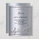 Um convite de cartão de aniversário de 50 anos moderno e trendy. Um fundo com aparência metálica prateada falsa, com uma moldura e notas musicais, letras pretas. Personalize e adicione um nome e informações da festa.
