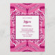 Faça com que sua celebração se destaque com este convite de aniversário rosa abstrato único, projetado com padrões simétricos intrincados e texturas de pinceladas expressivas. Os tons vibrantes de fúcsia e rosa criam uma aparência artística moderna que agrada aos amantes dos estilos de design abstrato, decorativo e contemporâneo.