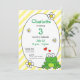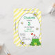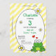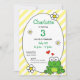 Celebre o dia especial do seu filho com este adorável convite de festa de aniversário com sapo, flor e listras. Confira mais da Coleção de Festa do Sapo Snookums & Bug.