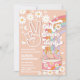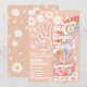 Celebre o marco do seu filho com este convite de festa de aniversário inspirado nos anos 70 retrô, apresentando um fundo de pêssego groovy, margaridas, borboletas, arco-íris e uma mão com o sinal de paz. Uma van hippie rosa adiciona um toque nostálgico divertido, perfeito para crianças que amam paz, amor e boas vibrações. Este convite personalizável é ideal para aniversários de 10 anos ou qualquer celebração de marco, misturando charme vintage com design lúdico para tornar sua festa inesquecível.
