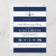 Um convite de aniversário com tema náutico moderno e ousado, apresentando um espaço para os monogramas dos noivos e informações relevantes relacionadas ao seu evento dentro de listras horizontais.