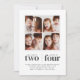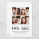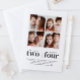 Um convite de aniversário conjunto moderno com 4 fotos suas e duas seções para o nome e idade de cada criança.