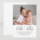 Um convite de aniversário conjunto moderno com a sua própria foto e duas seções para o nome e idade de cada criança.