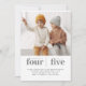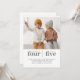 Um convite de aniversário conjunto moderno com sua própria foto e duas seções para o nome e idade de cada criança.