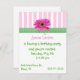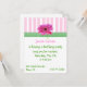 O convite de festas de uma garota Bonito, feito com listras brancas e cor-de-rosa no topo, era bordado com uma fita de gingham verde e branco e uma margarida alemã rosa. Personalize todos os campos de texto de acordo com as suas necessidades, com estilo de texto, cor e tamanho.