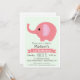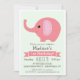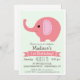 Elefante rosa-bebê com orelha-bolinhas, selva, animais de jardim zoológico, convite de aniversário-menina com tema safari. Personalize este bonitinho, retrô, sinta convite com o nome do seu filho. Bela, simples, design simples. Perfeito para o primeiro bebê, 1rua, aniversário, criança, crianças pequenas, ou crianças mais velhas. As cores incluem o rosa pastel e o castanho.
