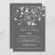 Convite de aniversário de casamento de pássaros de amor elegante e moderno apresenta um par de pássaros de amor com um galho de árvore adornado com borboletas e corações postos sobre um fundo cinza carvão escuro com listras finas. Bonito para uma celebração de aniversário de casamento de 25, 30, 40, 45, 50 ou 60 anos. Disponível em nossa loja em uma grande variedade de opções de cores modernas e elegantes