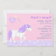 ~Este design de convites de aniversário apresenta um Unicórnio branco e roxo mágico. Há um fundo de fantasia rosa e roxo e um castelo. Personalize com o nome da sua aniversariante e os detalhes da festa.