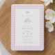 Celebre em estilo doce com este convite de aniversário de gingham rosa. Apresentando uma charmosa fronteira pastel, tipografia elegante, e uma bela ilustração de bolo desenhado à mão, esta design é perfeita para o dia especial de uma menina. Totalmente personalizável com seus detalhes de eventos, é ideal para o terceiro aniversário, festas infantis e outras celebrações de marco. O padrão de gingham de eterno adiciona um toque clássico, fazer este convite e guarde os seus convidados adorarão.