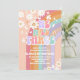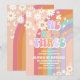 Celebre o dia especial do seu pequeno com este convite de aniversário retrô com arco-íris, apresentando cores pastéis, margaridas descoladas, sinais de paz e detalhes divertidos. Perfeito para um primeiro aniversário ou marco importante do seu filho, este design inspirado no estilo boho define um tom alegre e festivo para a sua festa. Personalize com o nome da criança, detalhes do evento e informações de RSVP para criar um souvenir único. Na moda e vibrante, este convite é ideal para pais que procuram uma maneira elegante, alegre e memorável de anunciar a sua celebração.