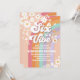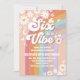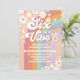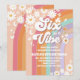 Celebre o dia especial do seu filho com este vibrante convite de aniversário retrô com flores alegres, sinais de paz, corações, borboletas e um rosto sorridente alegre. As listras pastel groovy em laranja, rosa, roxo e azul-turquesa criam um clima hippie divertido perfeito para festas infantis. Totalmente personalizável com detalhes da festa, este design colorido é ideal para um aniversário de 6 anos ou qualquer celebração com tema retrô. Faça do seu evento inesquecível com um convite único que irradia paz, amor e alegria.