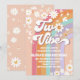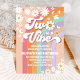 Celebre com estilo com este convite de aniversário retrô em arco-íris, apresentando cores pastéis divertidas, margaridas sorridentes, sinais de paz e motivos inspirados nos anos 70. Perfeito para festas infantis, este design vibrante combina nostalgia com charme moderno para criar um souvenir que os convidados vão amar. Personalize com o nome da criança, detalhes da festa e faça que o dia especial dela seja inesquecível. Ideal para segundos aniversários, chás de bebê ou qualquer celebração divertida com um clima hippie.