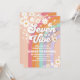 Celebre com um estilo descolado com este convite de aniversário retrô com arco-íris, apresentando margaridas, sinais de paz, borboletas e rostos sorridentes. Perfeito para festas infantis, este design inspirado nos anos 70 combina cores pastéis vibrantes com tipografia lúdica para definir o clima para uma celebração divertida. Personalize com os detalhes da sua festa e faça o aniversário do seu filho inesquecível. Ideal para festas de aniversário com tema retrô, hippie ou arco-íris, este convite adiciona um clima alegre e nostálgico que os convidados vão adorar.