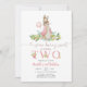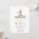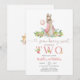 Celebre o dia especial do seu pequeno com este charmoso convite de aniversário de coelho em aquarela. Com um coelhinho fofo de jaqueta rosa e coroa de flores segurando um balão, cercado por folhagens delicadas e flores, este design é perfeito para uma festa infantil caprichosa. As cores pastéis suaves e detalhes divertidos tornam-no ideal para a celebração de aniversário de uma menina, criando um souvenir memorável para familiares e amigos. Personalize facilmente com os detalhes do seu evento para torná-lo verdadeiramente único.