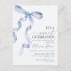 Convite de Aniversário da Menina com Laço Azul Coq