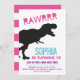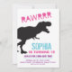 Prepare-se para alguma diversão raaaawwwrr neste Aniversário do Dinossauro T Rex! Este convite cheio de dinossauros é estilizado em rosa, azul e roxo - perfeito para o dia especial de qualquer menina! Vai ser dino-mágico!