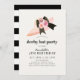 Este convite de festa de aniversário da menina do chapéu derby chique e moderno apresenta um grande chapéu rosa com rosas e um grande laço preto em um fundo branco creme. O verso apresenta um fundo branco com listras pretas. Personalize-o para suas necessidades. Você pode encontrar mais produtos de coelho na minha loja.