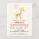 girafa bebê, selva, animais de zoológico, convite de aniversário de moça com tema safari. Personalize este bonitinho, retrô, sinta convite com o nome do seu filho. Bela, simples, design simples. Perfeito para o primeiro bebê, 1rua, aniversário, criança, crianças pequenas, ou crianças mais velhas. As cores incluem rosas claro castanhas e pastéis.