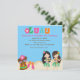 Comece a comemorar com este adorável convite do Luau. Seja um churrasco de quintal ou uma festa de aniversario de meninas, este é o convite perfeito para você! Também excelente para meninas gêmeas! Tem letras brilhantes e coloridas soletrando "LUAU" no centro com uma flor tropical saindo dela. Há um fundo azul claro com uma praia arenosa. Na praia estão duas lindas meninas de cabelos escuros vestindo saias de grama e colores no pescoço. Para o canto inferior esquerdo, uma cabeça tiki com um par de chinelos cor-de-rosa sentados na areia. É o convite perfeito para a sua festa. Veja os muitos outros designs e produtos desta linha. ©bonito grafik