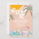 Crie ondas com este convite de aniversário divertido e colorido com tema de surfe! Com um sol vibrante, palmeiras, ondas do oceano e uma van retrô com sinais de paz e flores, este design tropical define o tom perfeito para uma celebração de festa na praia. Ideal para aniversários de crianças, reuniões de verão ou eventos marcantes, este convite combina charme lúdico com vibrações retrô de hippie. Personalize facilmente para criar um souvenir único que os convidados vão adorar.