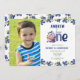 Convite de festas do primeiro aniversario Berry do garoto com foto do seu filho e tema de mirtilo. Doce Um cupcake de fosco de mirtilo com borda de mirtilo. Divirta-se para o primeiro aniversário da sua criança!