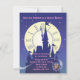 Princesa Convite de aniversário Real com um Castelo e lua com cara de relógio dentro da lua.