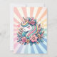 Belo unicórnio mágico, cor-de-rosa, flores e corações, convites de festas de aniversários personalizados de garotinha. Um unicórnio bonito rodeado por flores e corações. Bonita para qualquer menina que ama unicórnios e flores!
