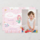 Faça um salto com este mágico convite de aniversário da sereia de cauda verde com foto! Apresentando uma sujeira verde de sereia, elementos do mar pastel, bolhas e uma área de fotos personalizável, esta design editável é perfeita para meninas que amam o oceano e a fantasia. Personalize facilmente o nome, a idade e os detalhes da festa, e carregue a foto do seu filho usando as ferramentas fáceis do Zazzle. Ideal para aniversários submarinos, sereias ou aquáticos.