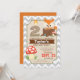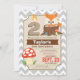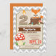 Convite de aniversário de raposa da floresta para garotinha. Convidar apresenta cinzas e padrão de fevron branco com raposa laranja. A vela de segundo aniversário pode ser personalizada.