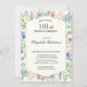 Este convite de aniversário de 101 anos com flores silvestres em aquarela colorida é uma maneira bonita de convidar seus convidados para a festa. Este design apresenta aquarelas pintadas à mão e um design de moldura formal com detalhes de texto que você pode personalizar usando o editor de texto.