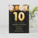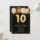 Convite de Aniversário de 10 anos, Balão Preto Dourado Convite de Aniversário de 10 anos, Convite de Aniversário de Confetes Imprimível, Convite de Aniversário de Bolinhas