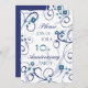 Convite de aniversário de casamento de 10 anos em elegante padrão floral branco e azul, delicado e sofisticado com redemoinhos divertidos. Personalizável com os detalhes da sua festa.