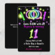 Convite de Aniversário de 11 anos da Festa GLOW Lights. Personalize o texto na frente e no verso.