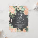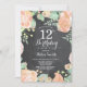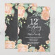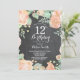 Convite de Aniversário de 12 Floral de Pessegueiro Botânico. Convite de Aniversário para Menina Rosa Floral. Flor Floral de Aquarela. Rosa Rosa Rosa Elegante e Flores de Pêonias. Aniversário de criança. Fundo Chalkboard. Preto e Branco. 13 15 16º 18º 20 21rua 30 40º 50º 60º 80 de 70 100º, qualquer idade. Para mais personalização, clique no botão "Personalizar" e use nossa ferramenta de design para modificar este modelo.