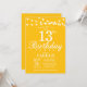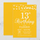 13 Aniversário com Luzes de Cordas. Fundo amarelo. Aniversário de criança. Menina ou Menina Convidam. 13 15 16º 18º 20 21rua 30 40º 50º 60º 80 de 70 100º, qualquer idade. Para mais personalização, clique no botão "Personalizar" e use nossa ferramenta de design para modificar este modelo.