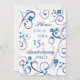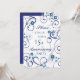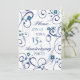 Convite de aniversário de 15 anos de casamento em padrão floral branco e azul elegante, delicado e sofisticado com redemoinhos divertidos. Personalizável com os detalhes da sua festa.